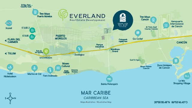 Es la primera comunidad planeada en Puerto Morelos y se basa en la integración de privadas residenciales y una gran avenida comercial denominada Gran Vía del Mar, en un entorno de gran riqueza natural dentro de la zona campestre norte de este destino.